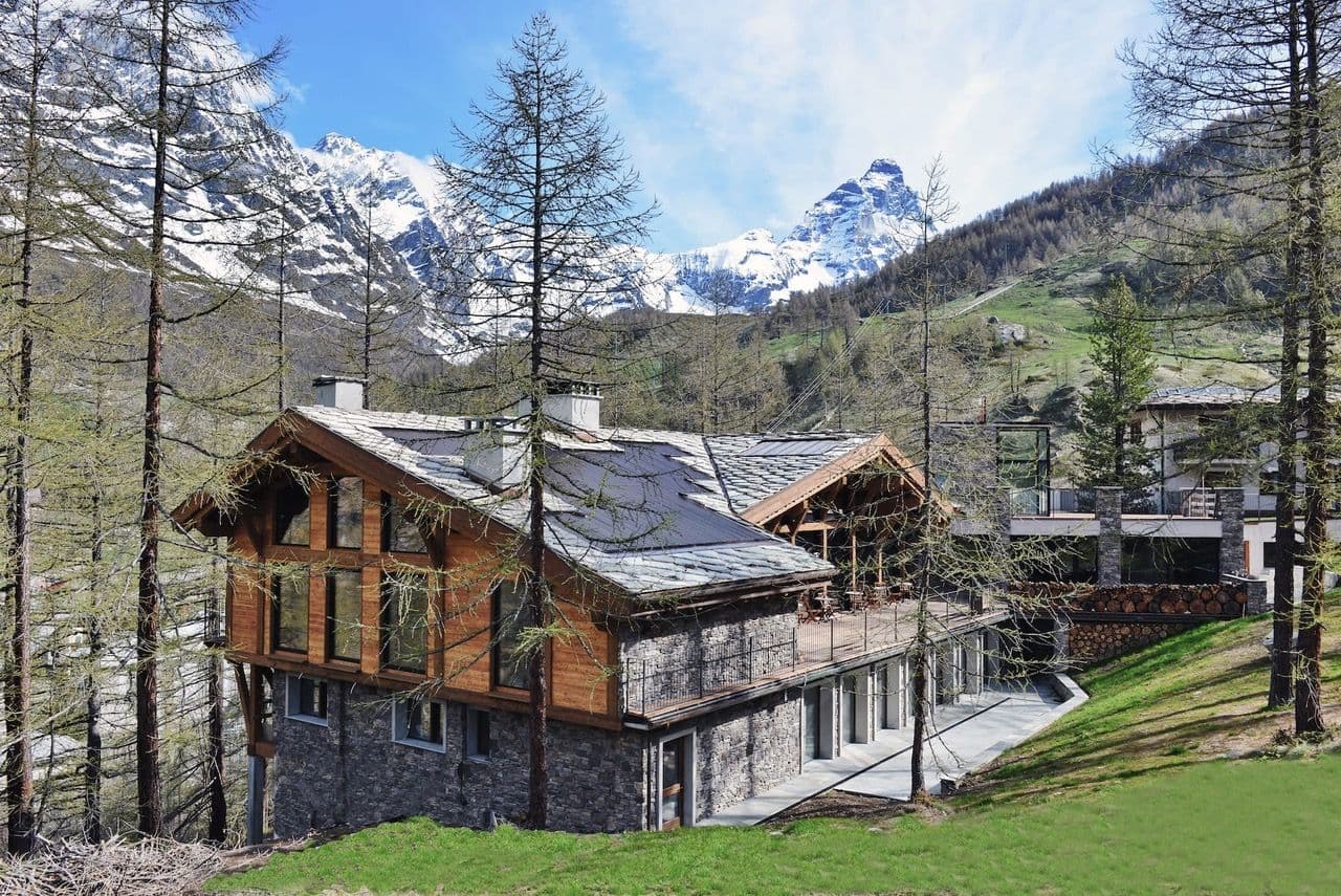 Il Les Neiges D'Antan sorge sulle Alpi, in un tranquillo villaggio fuori dal centro di Cervinia, circondato da pochi e rivoli d’acqua. Questi boschi diventeranno la nostra Shala esterna, luogo di cura e ispirazione.
